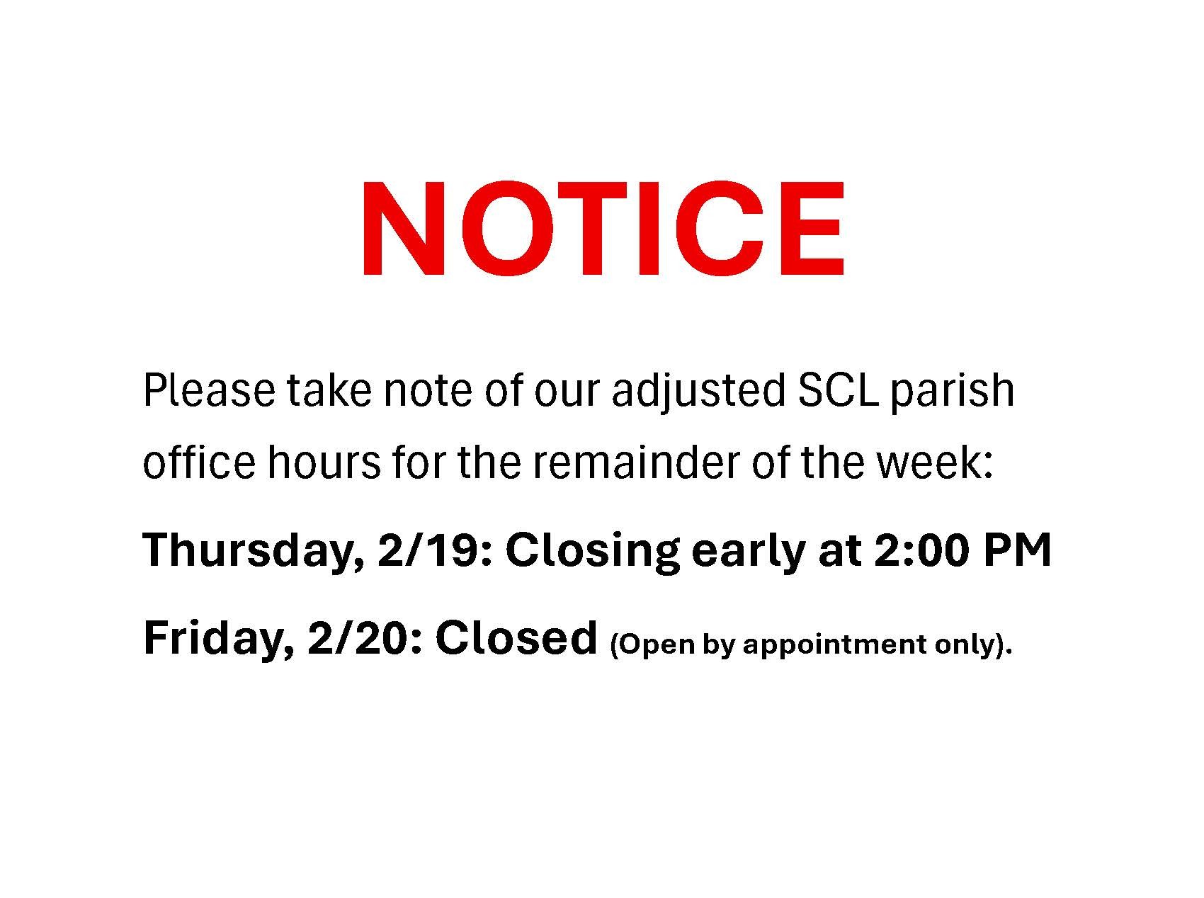 02/19 & 02/20 PARISH OFFICE HOURS